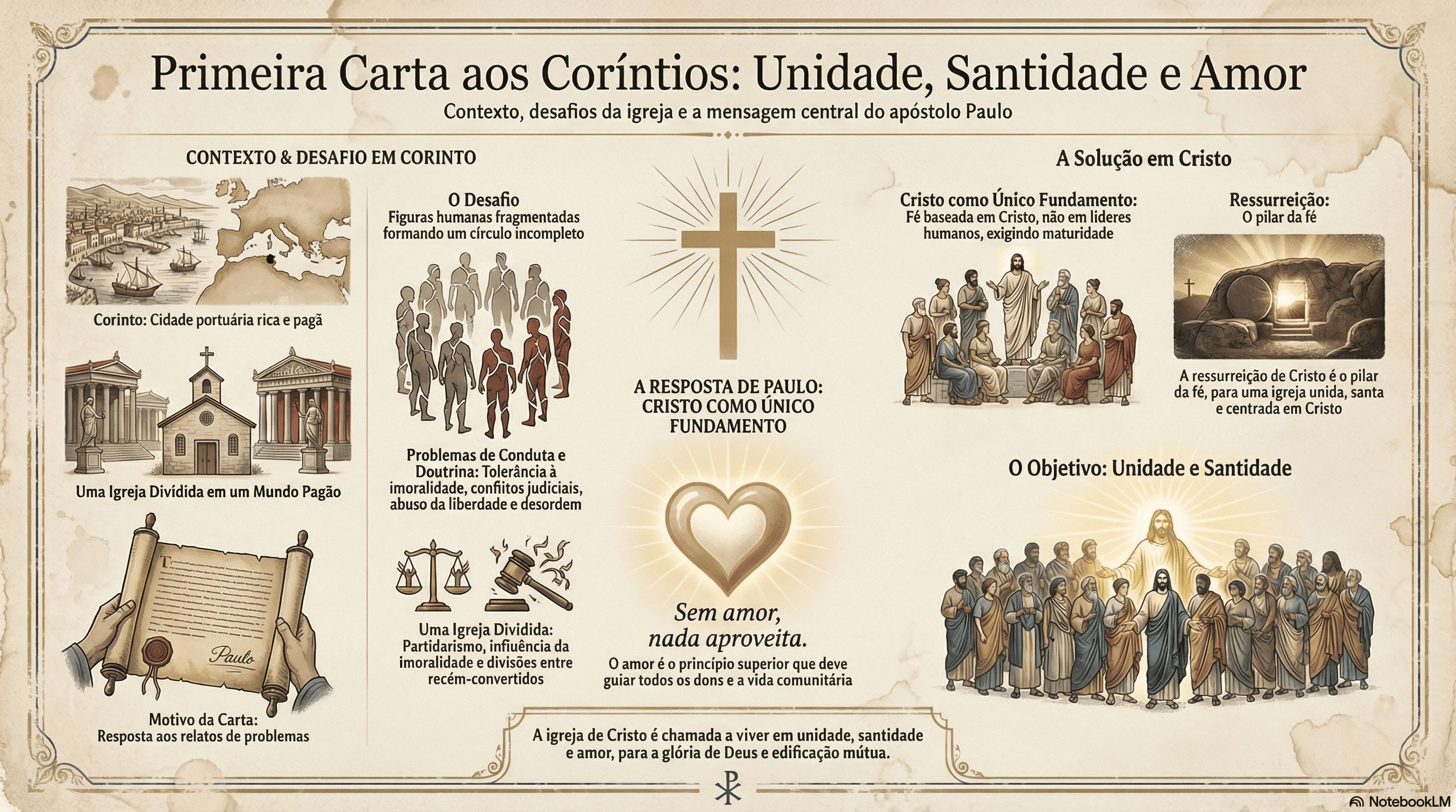 Sugestão de Pregação: A pregação deve abordar o tema "Do Caos à Ordem: A Maturidade em Cristo". Inicie contextualizando os desafios de Corinto—uma sociedade rica e influente, mas que infiltrou costumes pagãos na igreja, gerando imoralidade e conflitos internos.